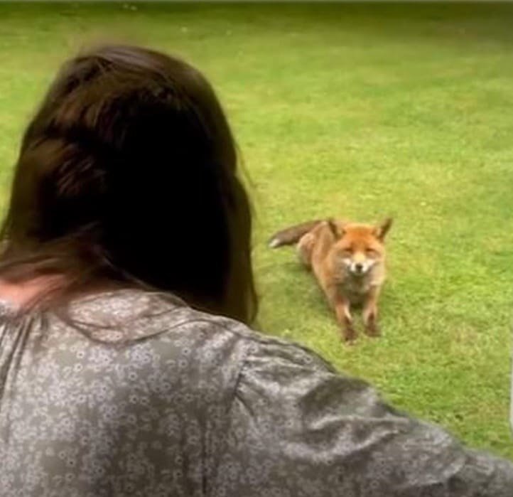 The video capturing this extraordinary event stands as a testament to the gentle impact of Zaria’s musical talents. As the fox relaxes to the tune of her lullaby, we’re reminded of the serene influence that music can have on all creatures. The fox’s recurring visits are a clear indication of the budding friendship, a scenario where two different worlds peacefully overlap, connected by the harmonious threads of music.